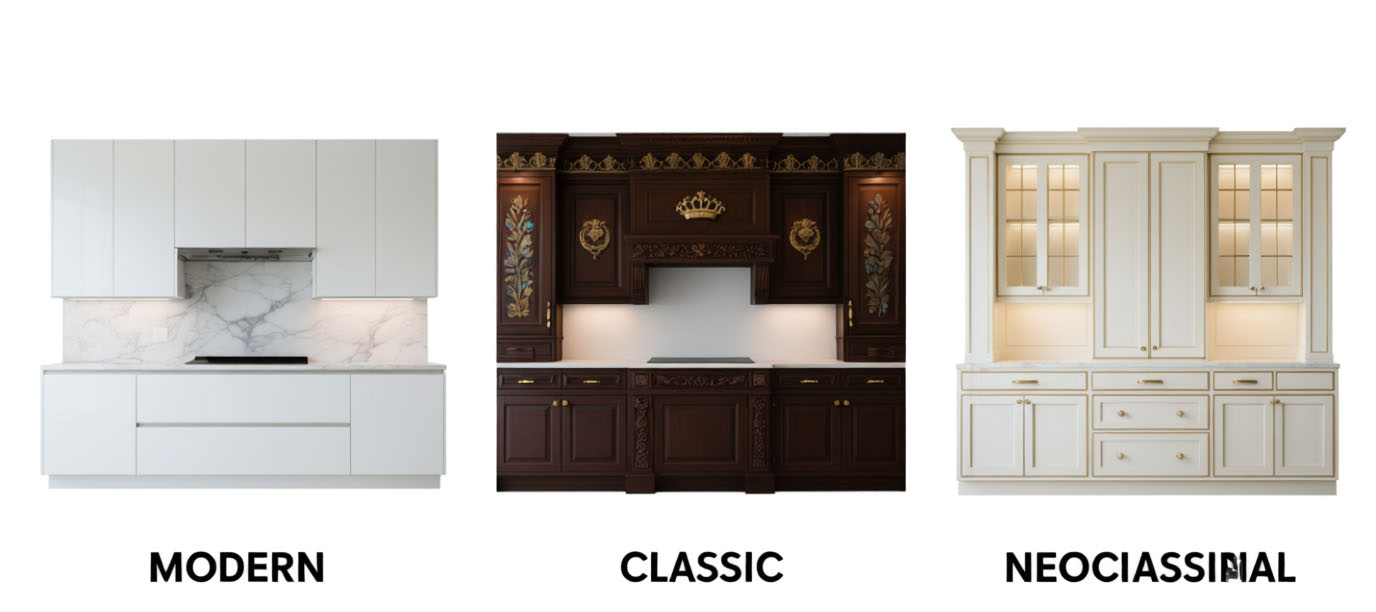 در میان سبکهای متنوع کابینتسازی، سه رویکرد اصلی بیش از سایرین مورد توجه قرار گرفتهاند: مدرن، کلاسیک و نئوکلاسیک. هر یک از این سبکها فلسفه، زبان طراحی و روح خاص خود را دارند. در ادامه به بررسی دقیق تفاوتها و ویژگیهای آنها میپردازیم.